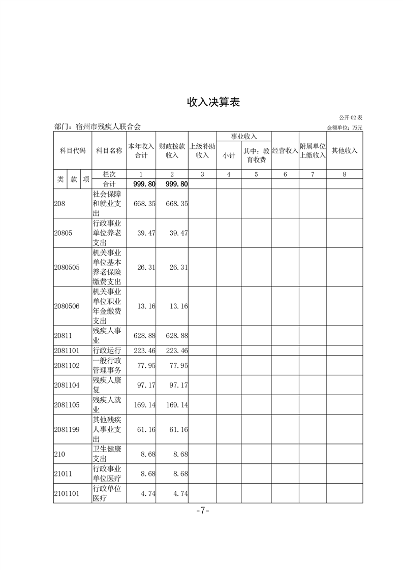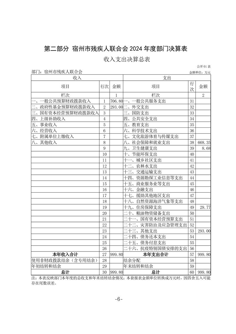 宿州市残疾人联合会2024年度部门决算公开 |