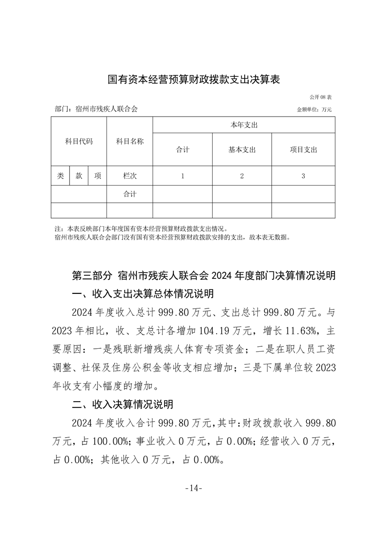 宿州市残疾人联合会2024年度部门决算公开